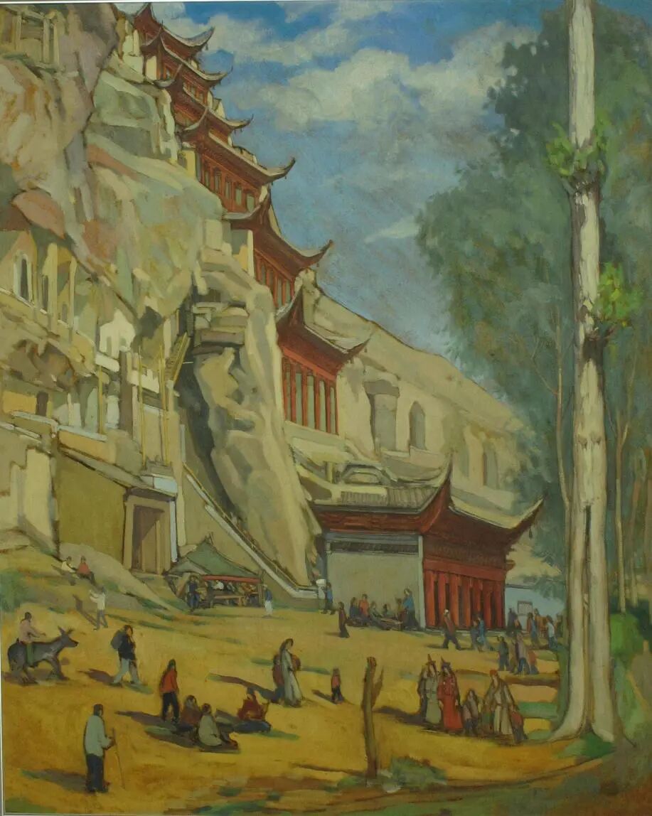 Temple Fair at the Mogao Caves, oil on canvas, 1954, from the collection of the Zhejiang Provincial Museum [Photo/Hebei Museum official WeChat account]