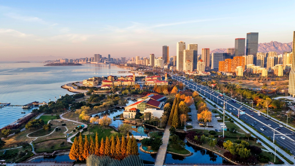 The Tangdao Bay coastline in Qingdao’s West Coast New Area, Shandong province has unveiled a vivid early-winter panorama. Along the shoreline, one side is adorned with frost-tinted forests where layers of red, orange, and yellow colors mingle like a splendid brocade; on the other side, shimmering turquoise waves meet the sky, with gentle surf brushing the shore and scattering glimmers of light.