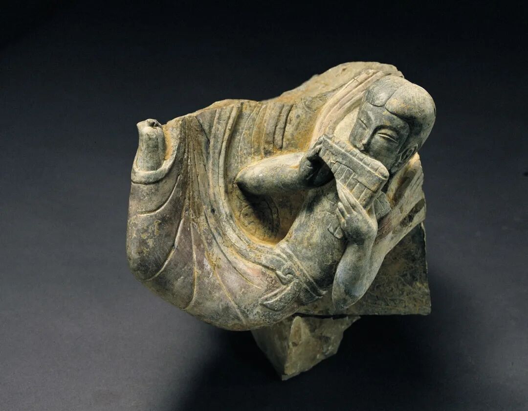 Painted high-relief carving of a flying Apsara, 500-550, from the collection of the Qingzhou Museum [Photo/Hunan Provincial Museum official WeChat account]