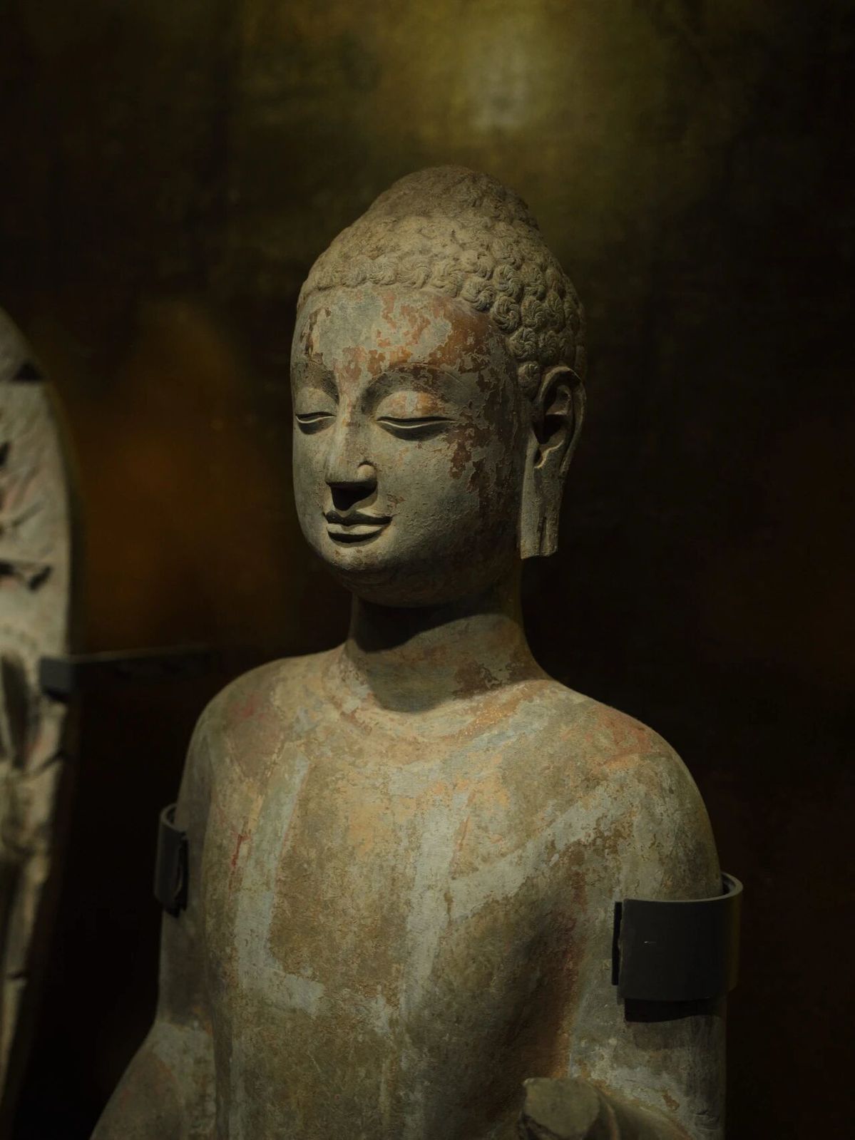 Painted standing Buddha sculpture, Northern Qi Dynasty (550-577), from the collection of the Qingzhou Museum [Photo/Hunan Provincial Museum official WeChat account]