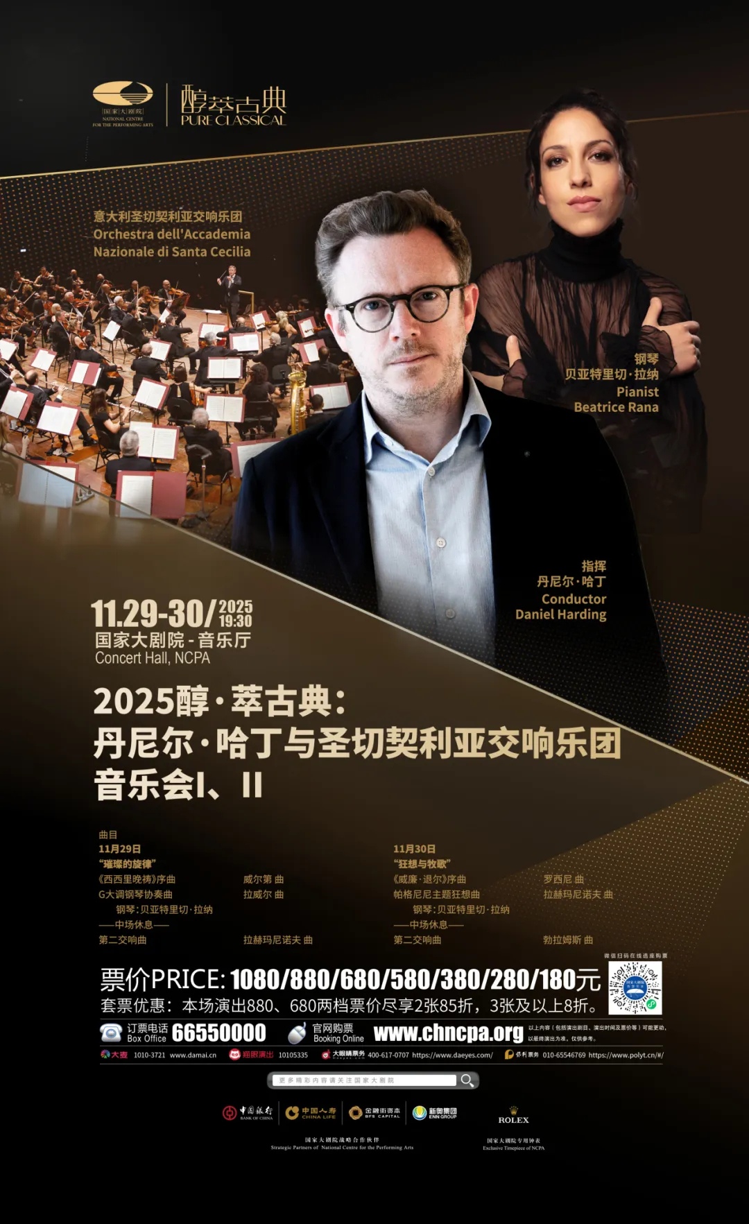 From Nov 29 to 30, maestro Daniel Harding will join the legendary Orchestra dell’Accademia Nazionale di Santa Cecilia and acclaimed pianist Beatrice Rana for the NCPA 2025 Pure Classics series at the National Centre for the Performing Arts in Beijing. Together, they will bring masterpieces by Verdi, Rossini, Ravel, Rachmaninoff and Brahms to life, delivering two unforgettable evenings of musical brilliance you won’t want to miss.
