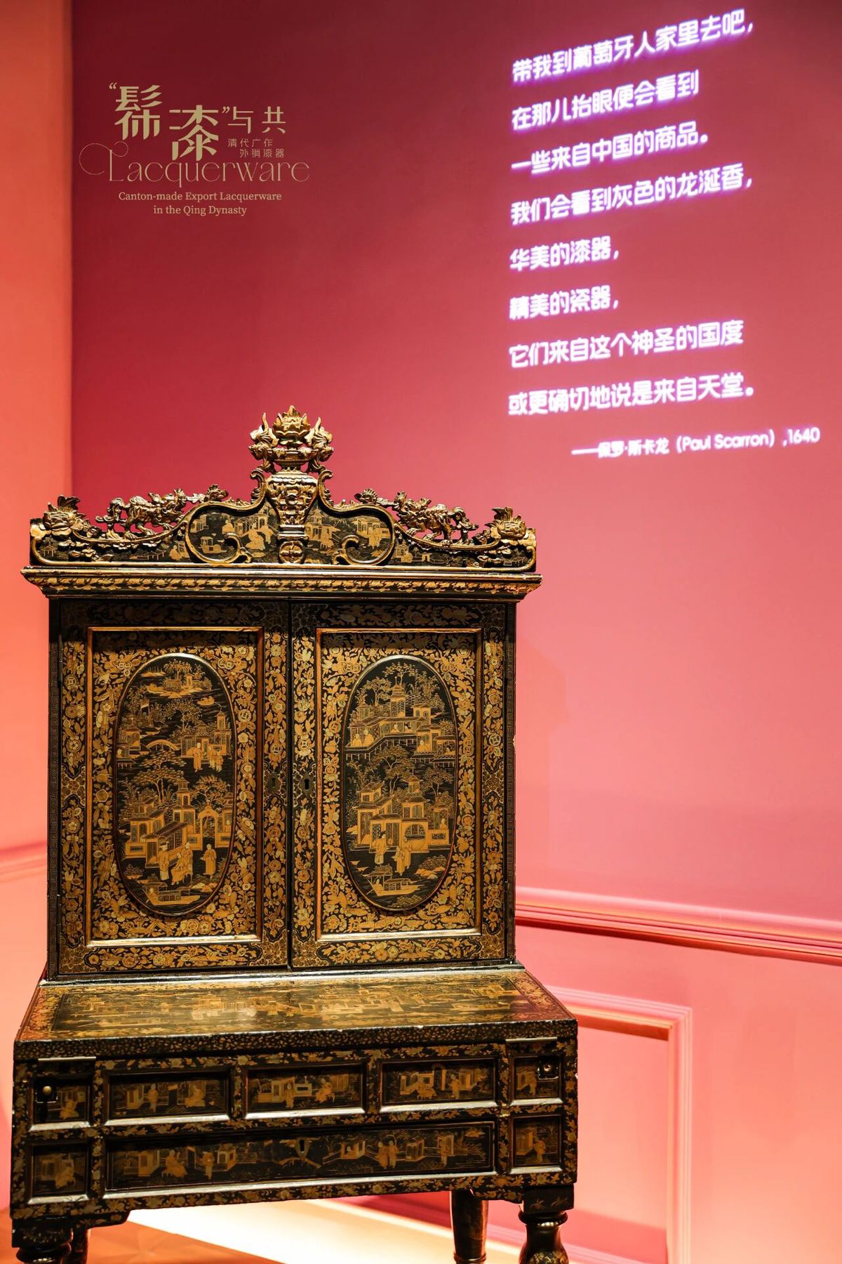 Black-lacquered dresser with landscape and figure motifs in gold tracery, 19th century, from the collection of the Guangdong Museum [Photo/Guangdong Museum official WeChat account]
