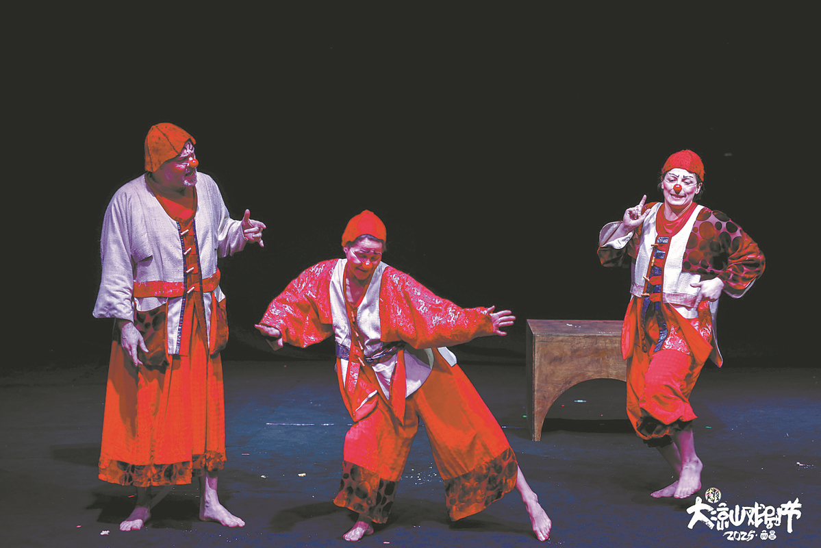 Members of the US troupe perform Red Tiger Tales on stage, reimagining ancient fables through comedy and acrobatics.[Photo provided to China Daily]