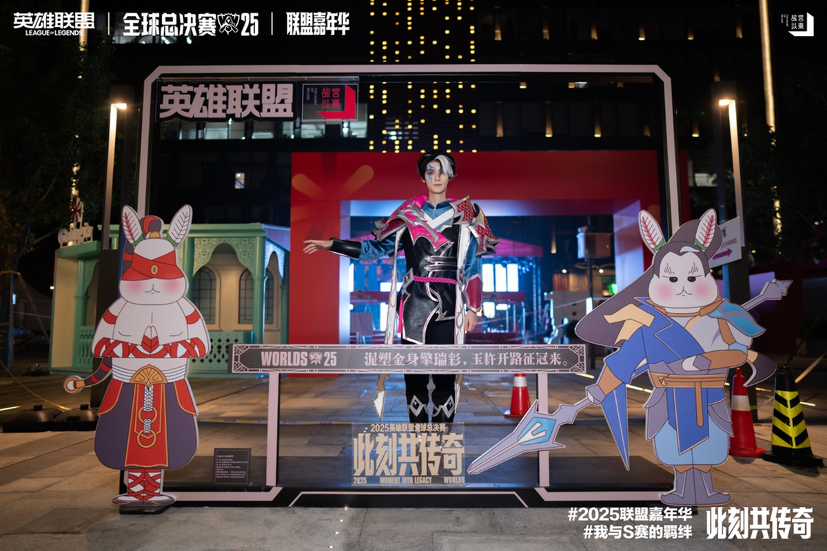 Inspired by the Rabbit God, a traditional Beijing craft, the work integrates the game’s characters Li Qing and Zhao Xin with the traditional auspicious beast, shaping the image of the Armored Rabbit God full of power and spirituality. The work is dominated by a bright red and blue color scheme, integrating elements of east costume, symbolizing the resonance between traditional belief and modern competition. As the creators stated: "We hope to use local Beijing cultural symbols to express the spirit of e-sports players forging ahead, and enable the visitors to perceive the vitality of cultural transformation." When interacting and taking photos with the frame, the visitors feel as if they are in the battle, and leave their own Armored Mark in front of the frame.
