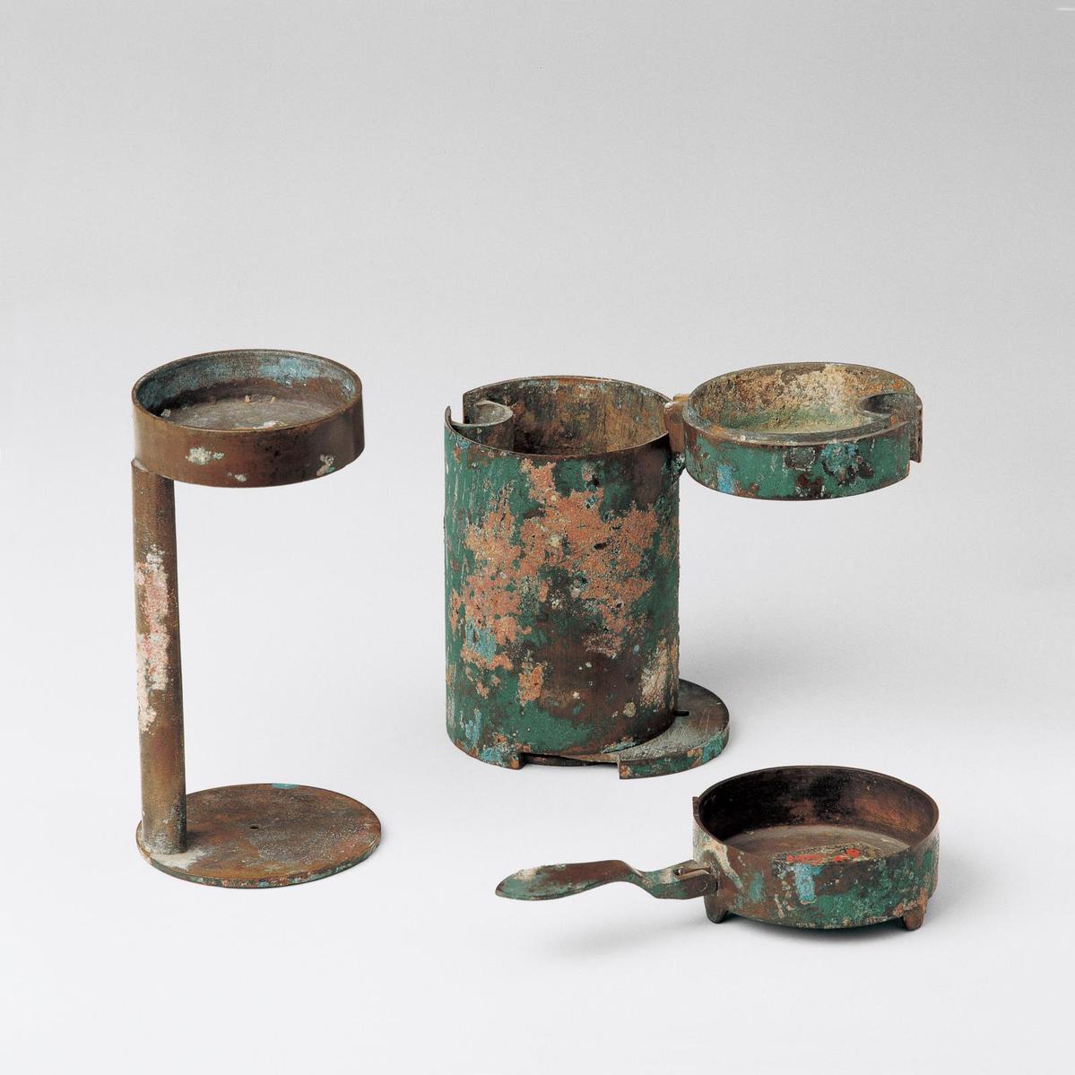 At first glance, this Han Dynasty (206 BC-AD 220) bronze lamp looks simple, devoid of ornate decoration, forming a hollow cylindrical container with a base, a lid, and a layered interior when closed. But once disassembled, it is transformed into three interconnected bronze lamps – arranged left and right, staggered in height. More than 2,000 years ago, someone was already thinking about compact design.