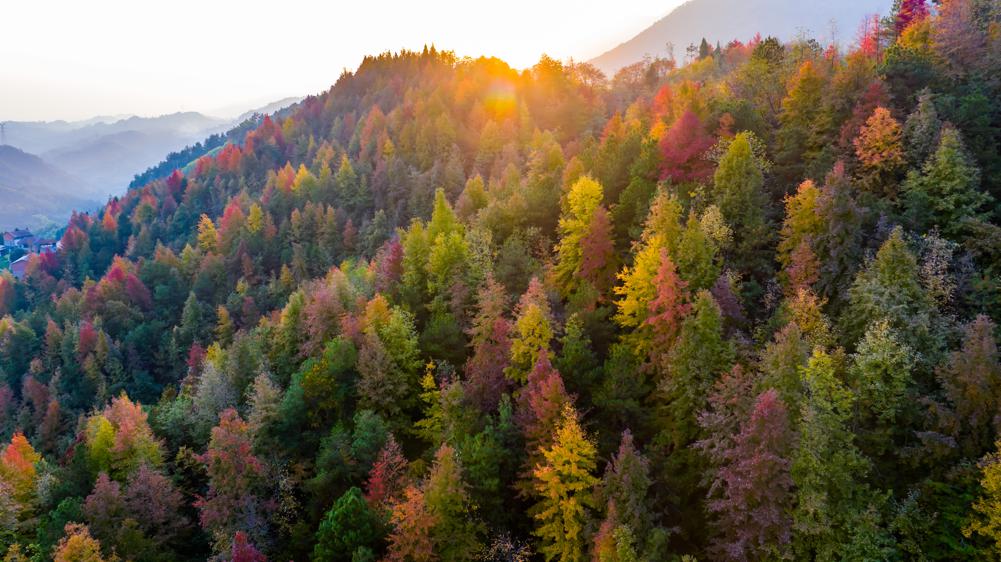 Colorful forest in Chongqing village creates tapestry of autumn color