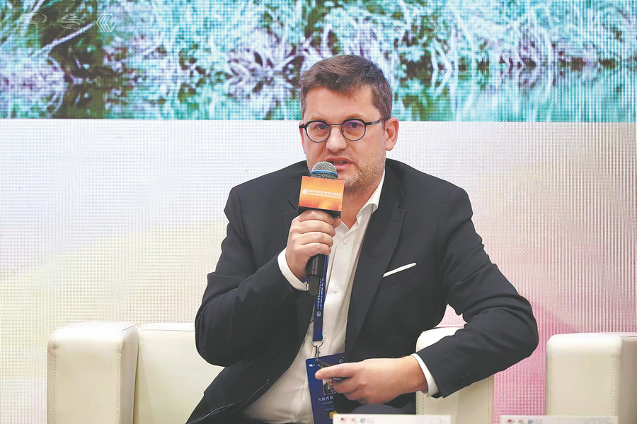 Johannes Neubert, artistic director of the Grafenegg Music Festival, gives a speech during the 2025 Beijing Forum for Symphonic Music. CHINA DAILY