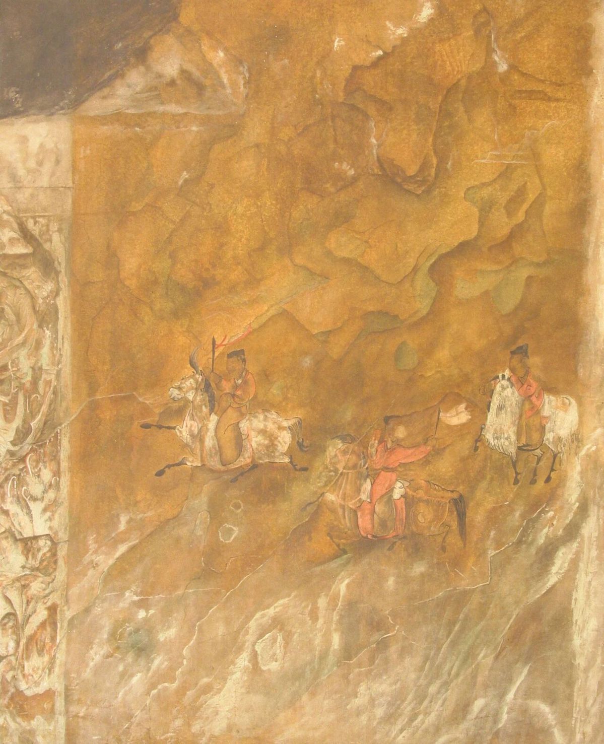 Copy of tomb mural depicting riders on horses, from the collection of the Liaoning Provincial Museum [Photo/Liaoning Provincial Museum official WeChat account]