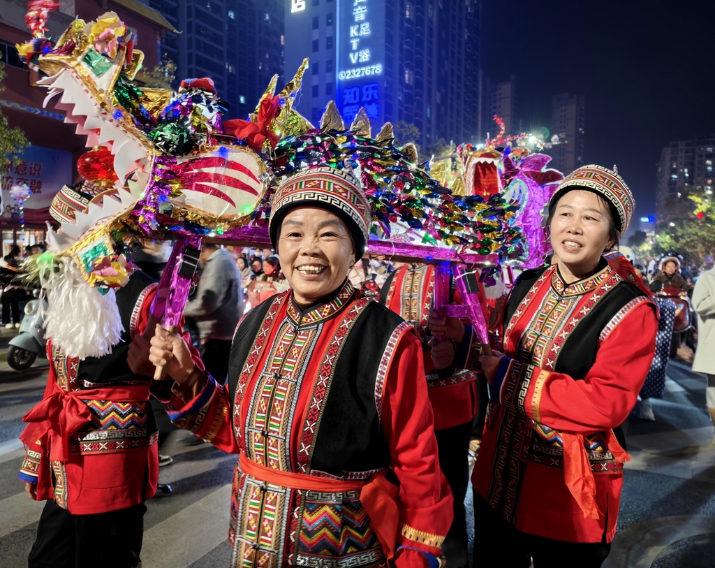 On the evening of Dec 3, Jianghua Yao autonomous county in Hunan province held a dragon and lion lantern fair. Seventy teams paraded through the streets, showcasing various traditional Yao-style dragon lanterns and creating a festive atmosphere to celebrate the county’s 70th anniversary and highlight the unity of the Chinese nation as one family.