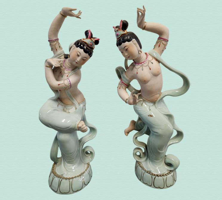 Painted celadon sculptures of Dunhuang dancers, from the collection of Jingdezhen China Ceramics Museum [Photo/Jiangxi Art Museum official WeChat account]