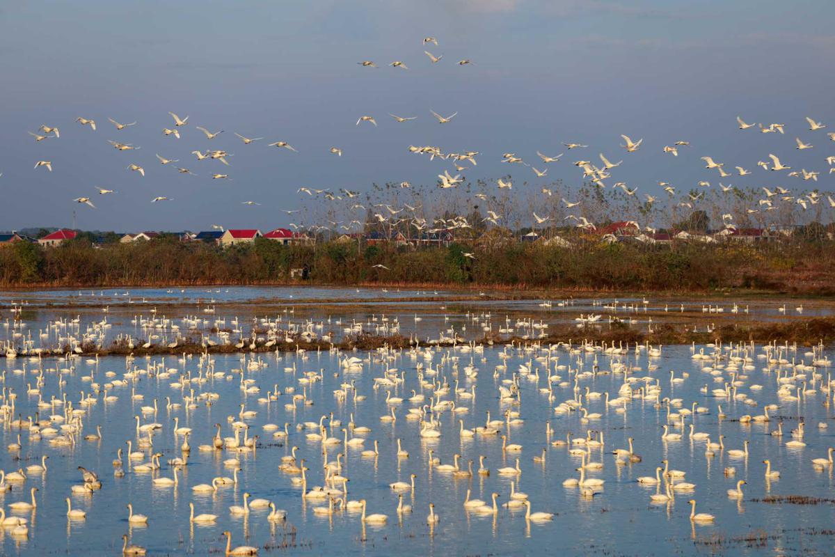 Situated along a migratory path for numerous bird species, the Donggu Lake area boasts exceptional wetland conditions and biodiversity. In recent years, efforts have been made to restore and protect the wetlands, including ecological restoration, the adoption of green farming practices, and scientific adjustments to agricultural structures. An ecological reserve was established in 2017, with an investment of more than 7 million yuan ($1 million).
