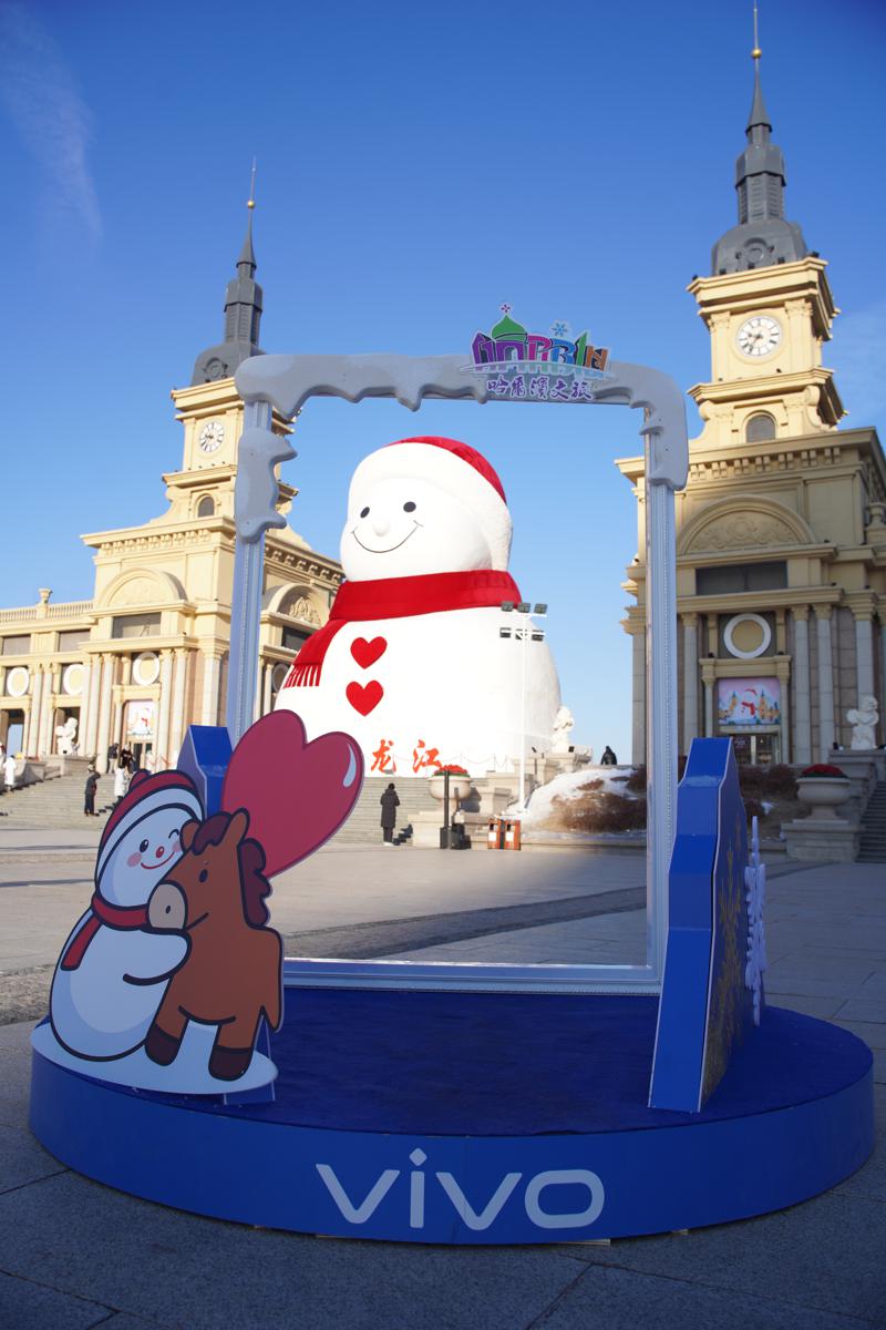On Tuesday, a 19-meter-tall snowman was completed on the bank of the Songhua River, becoming an opportunity for wintery photos in Harbin, the capital of Northeast China's Heilongjiang province. [Photo provided to chinadaily.com.cn]