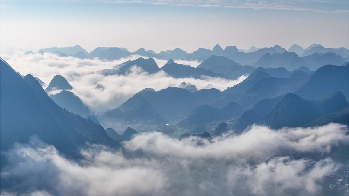 Aerial photos reveal the rolling, dough-like ridges around Xingyi in Guizhou province, all shrouded in mist. [Photo by Liu Chaofu/For chinadaily.com.cn]