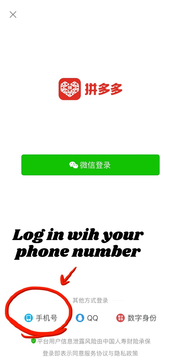 Alternatively, tap "Me" (Chinese: 个人中心) on the bottom navigation bar and log in with your phone number.