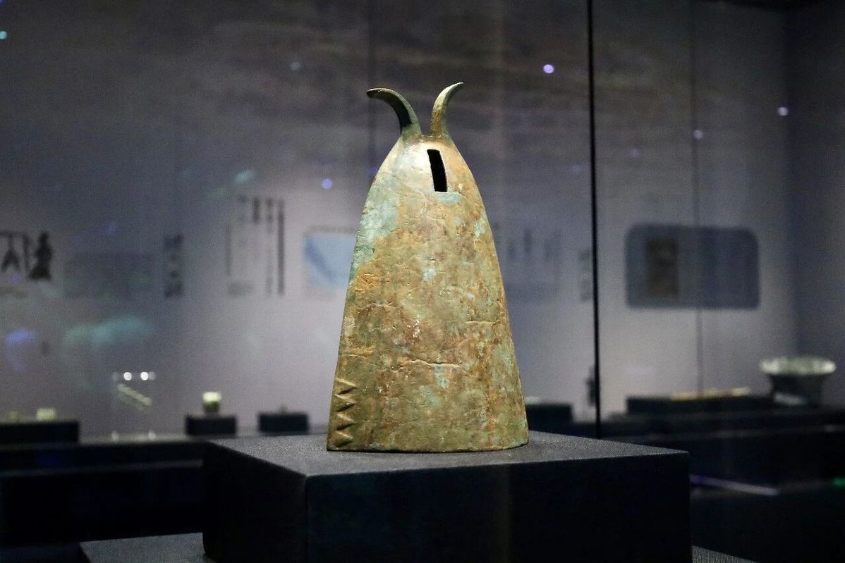 Bronze bell with ram horn-shaped handles [Photo/Museum of Guangxi Zhuang Autonomous Region official WeChat account]