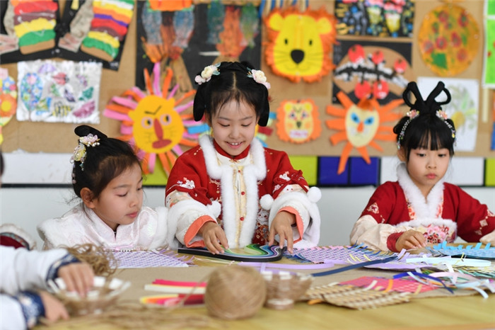 At a primary school in Qingdao, students recently took part in a vibrant display of traditional Chinese culture. Guided by their teachers, children immersed themselves in the beauty of intangible cultural heritage by learning and creating various traditional crafts.