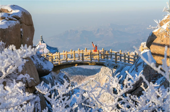 A winter ascent of the Jufeng Peak reveals a landscape transformed into a breathtaking wonderland. Imagine standing atop the summit as the first golden rays of the new day pierce the ethereal morning mist, illuminating the rugged peaks and shimmering sea below. The winter air is crisp, the skies are vast, and serene clouds drift through the valleys, creating a scene of awe-inspiring beauty where heaven and earth seem to merge.