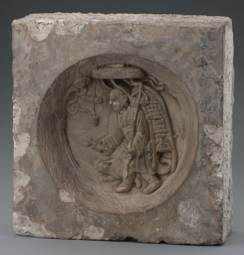A pagoda brick decorated with a walking monk carving, Northern Song Dynasty (960-1127) [Photo/Tsinghua University Art Museum official WeChat account]
