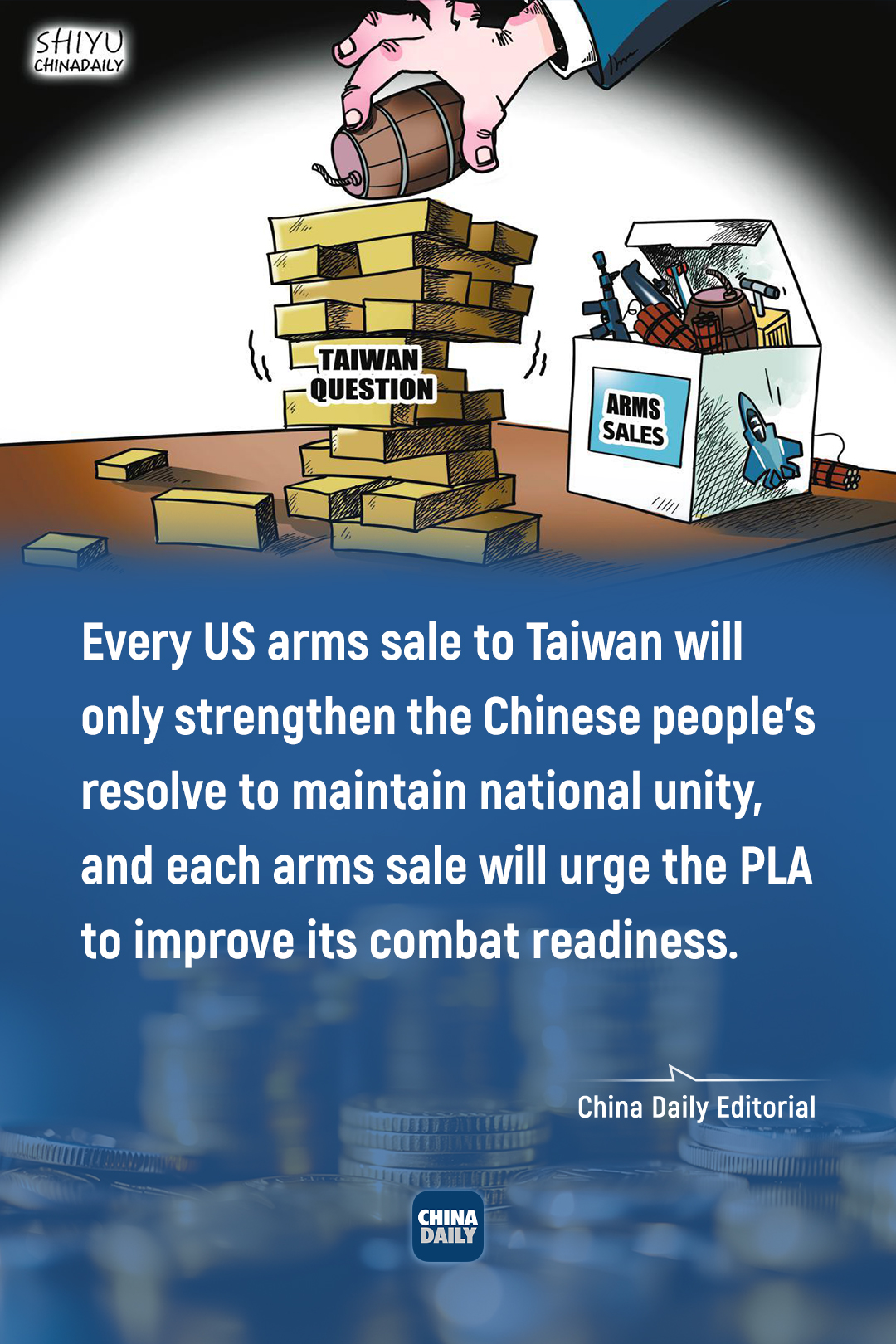 Editor's note: Following Washington's announcement of a record $11.1 billion arms package for China's Taiwan region, the People's Liberation Army Eastern Theater Command launched joint drills, codenamed "Justice Mission 2025", starting from Monday in the Taiwan Strait and areas to the north, southwest, southeast, and east of the island. What consequences will the US arms sale to Taiwan have? The China Daily editorials offer the answers.