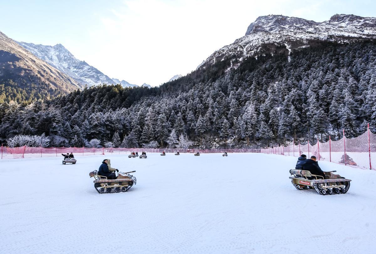 People enjoy winter sports on Monday at the opening ceremony of the 8th Sichuan National Fitness Ice and Snow Season at the Bipenggou ice and snow park in Lixian county, Aba Tibetan and Qiang autonomous prefecture, Sichuan province. [Photo provided to chinadaily.com.cn]
