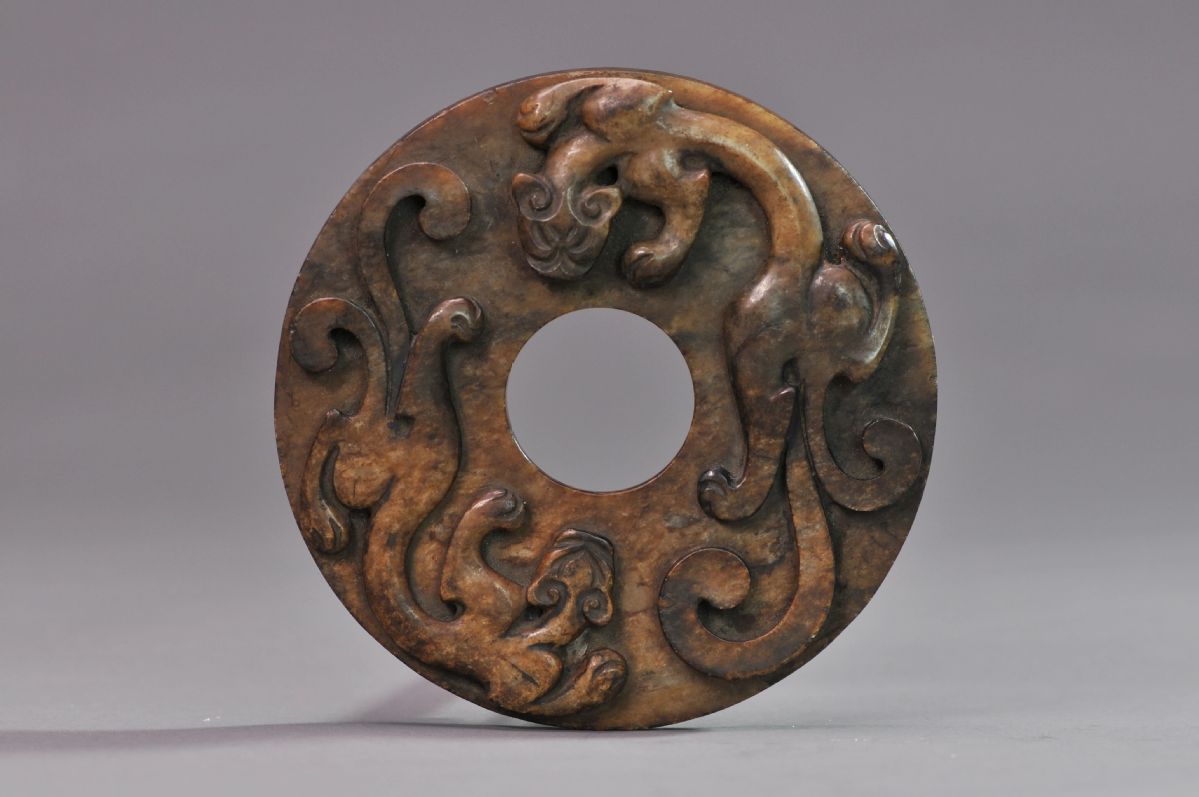 disc with two chi (hornless dragon) motifs, Ming Dynasty (1368-1644) [Photo/Yangzhou Museum official WeChat account]
