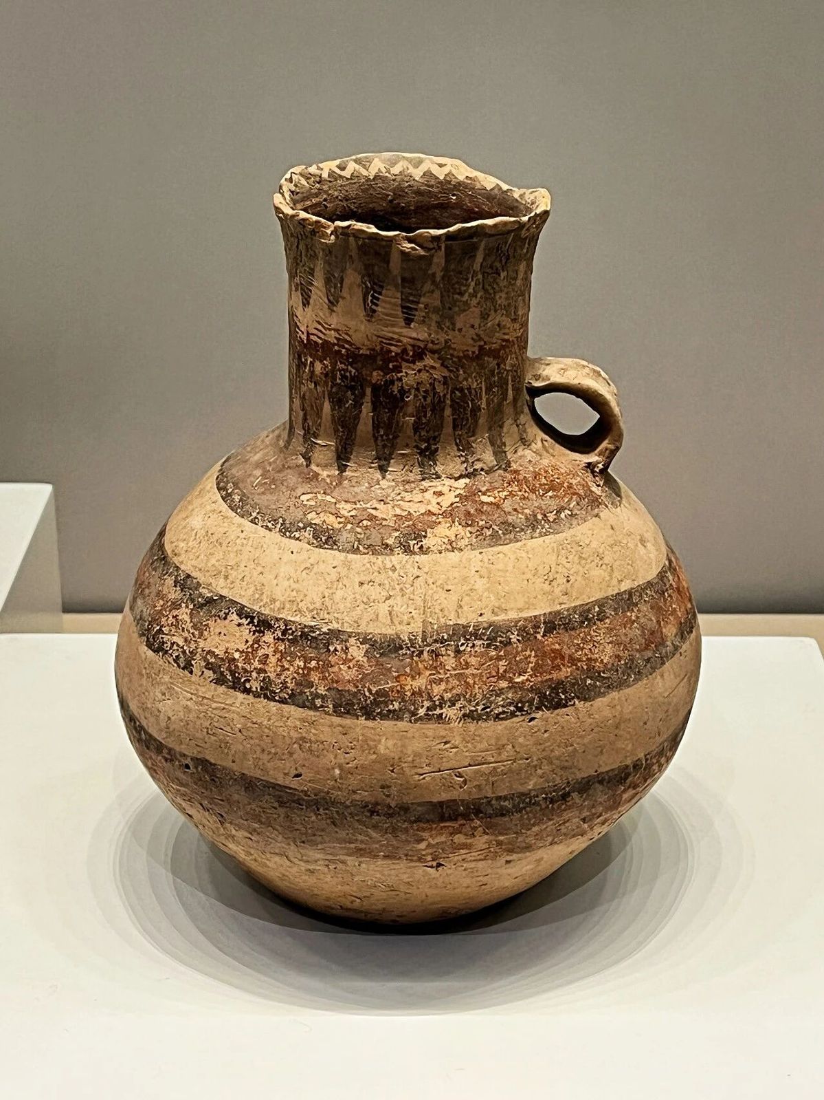 Painted pottery ewer with sawtooth and arc motifs, Majiayao culture, from the collection of the Xining Museum [Photo/Nanjing Municipal Museum Headquarters official WeChat account]