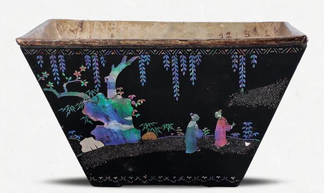 Discovering a vivid landscape picture on ancient lacquered wine container