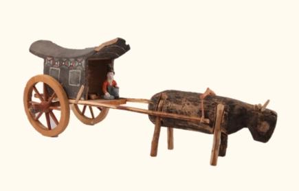 Wooden ox chariot, 640-792, unearthed from the Astana Cemetery in Turpan, Xinjiang Uygur autonomous region [Photo/Zhoushan Museum official WeChat account]
