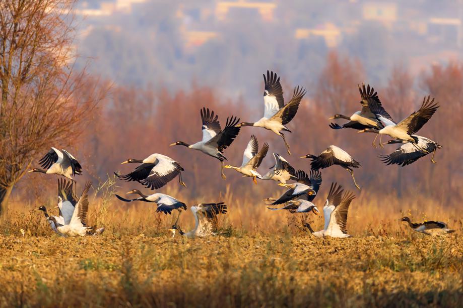 Record number of black-necked cranes arrive at Guizhou's nature reserve