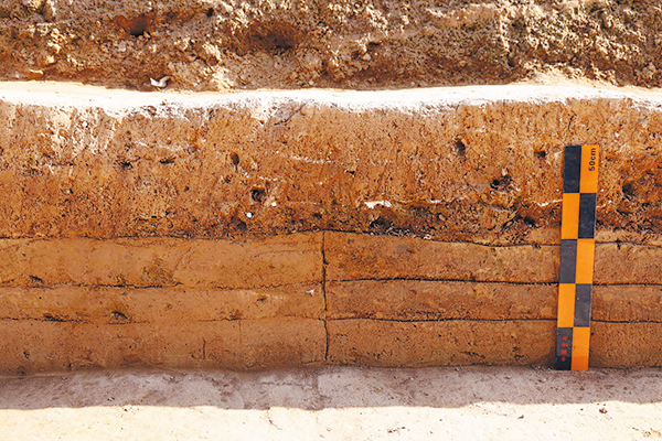 Evidence of rammed earth block division indicates that the construction of the Epang Palace's foundation was carried out in segments. [Photo provided to China Daily]