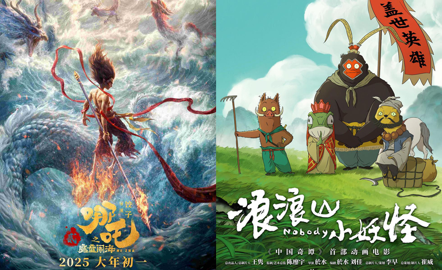 Posters of Ne Zha 2 (L) and Nobody. [Photo provided to chinadaily.com.cn]