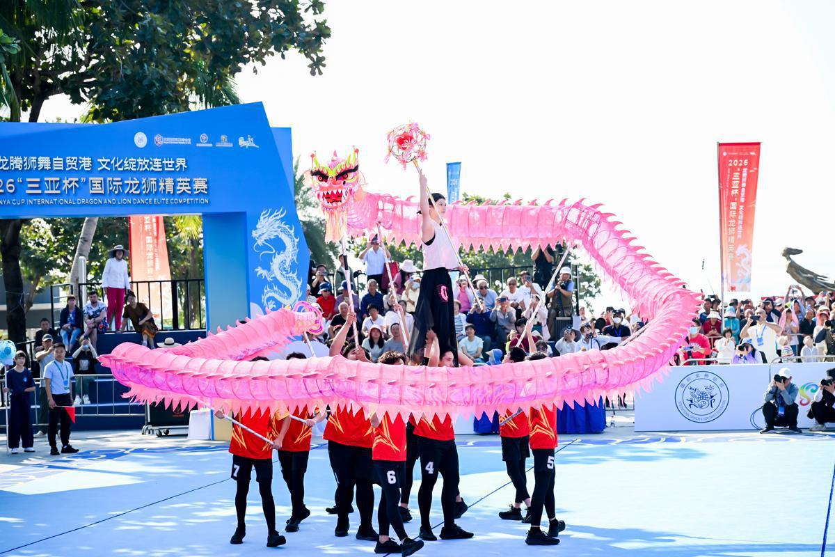 About 300 athletes representing 24 international teams competed at the 2026 Sanya Cup International Dragon and Lion Dance Elite Competition in Sanya, Hainan province, from Jan 18 to 19. [Photo provided to chinadaily.com.cn]