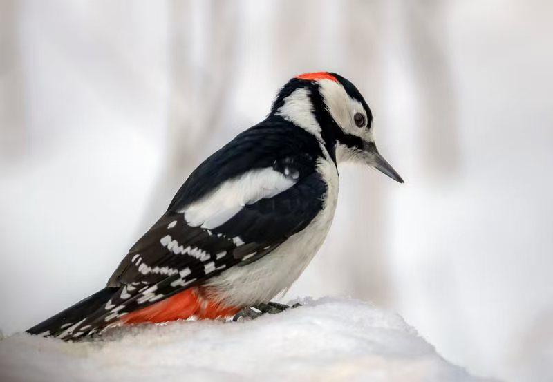 Woodpeckers, finches captured in Jilin winter scenes