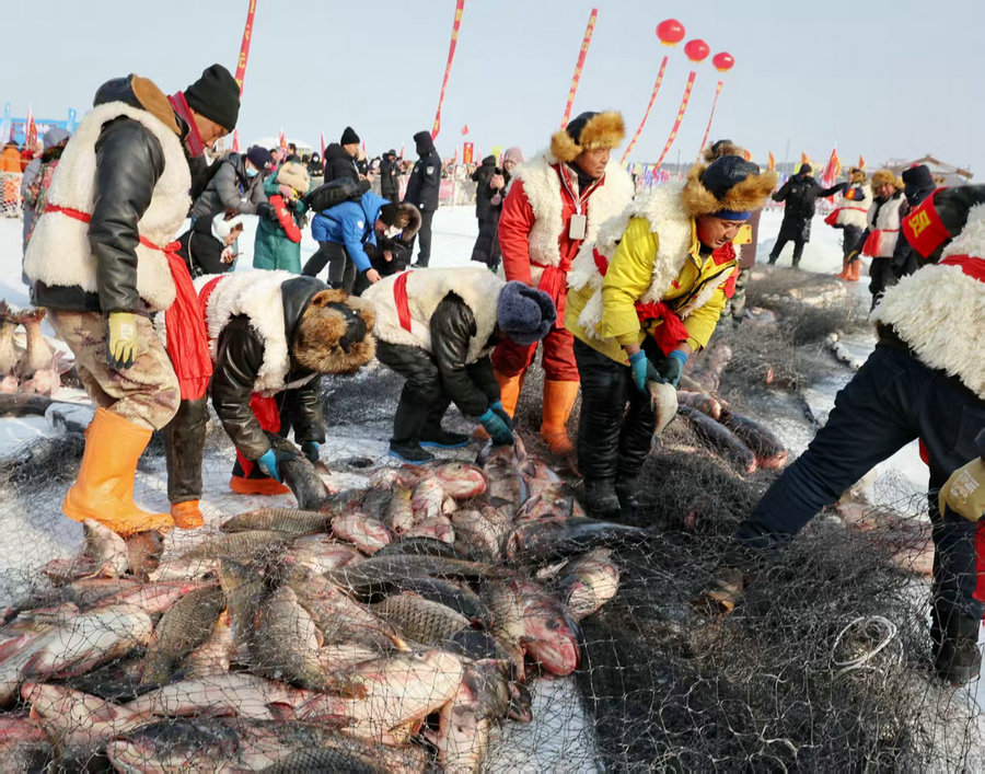 Ice fishing attracts tourists to Jingpo Lake's winter festival