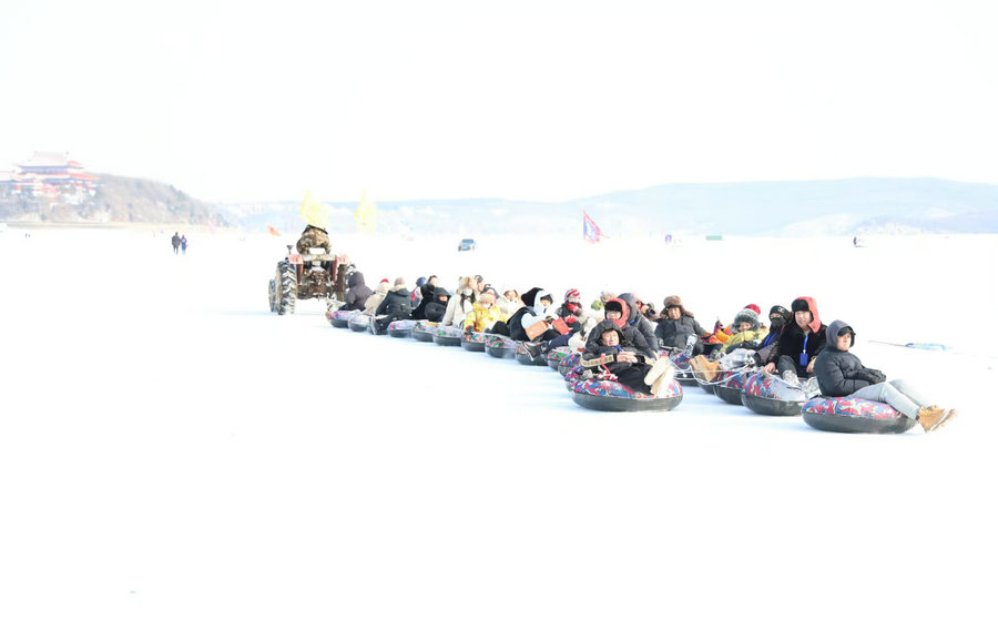 The Jingpo Lake scenic area in Mudanjiang, Northeast China's Heilongjiang province, recently held its annual winter ice fishing festival. [Photo by Zhang Yingli/For chinadaily.com.cn]