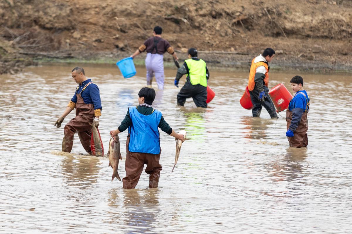 At 10 am, the starting gun went off, and the half-drained ponds transformed into scenes of joyful chaos. Children in waterproof gear chased smaller fish with nets, while adults teamed up to corner larger catches in deeper sections. Even international visitors joined in, their laughter and shouts rising as mud and water splashed freely. Friends and family cheered from the pondside, capturing the moment as successful fishers emerged, triumphantly holding up their muddy prizes.