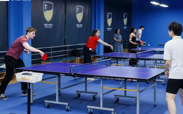 Chinese and British students at the University of Nottingham Ningbo China (UNNC), the first Sino-foreign university to open its doors in China, play ping-pong in their spare time. [Photo provided to chinadaily.com.cn]